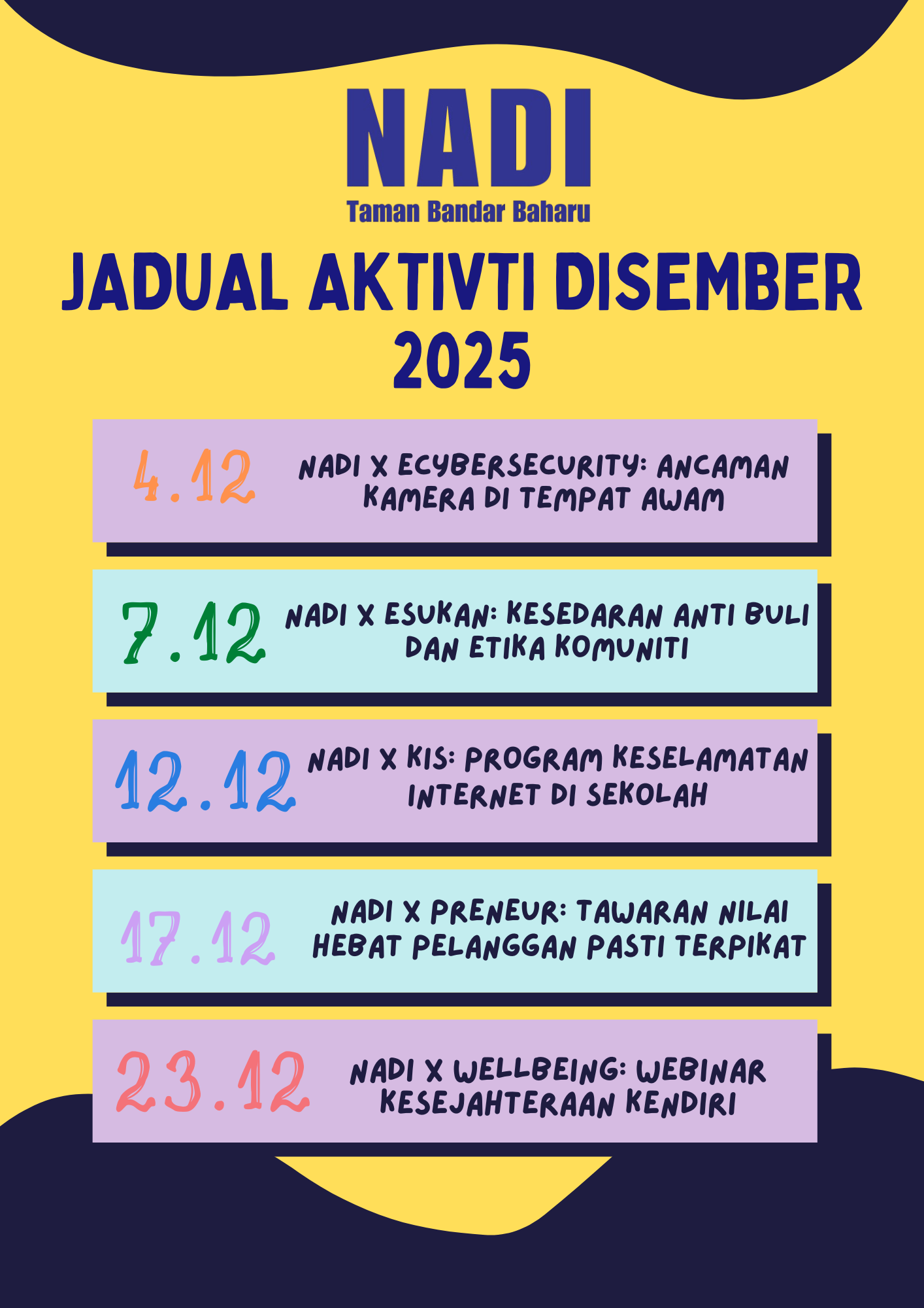 ๐ฃ [WEBINAR DECEMBER NADI x CYBERSECURITY]ANCAMAN KAMERA TERSEMBUNYI, APA YANG PERLU ANDA TAHU SLOT 2 ๐ 18 Disember 2025 (Khamis)๐ 3:00 PM โ 4:30 PM๐ป Platform: Zoom๐ Pautan Pendaftaran: cybersecurity.nadi.my (untuk ahli NADI sahaja) ๐ Apa yang akan dipelajari?โDalam slot […]