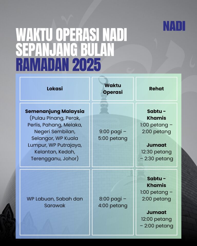 ๐ ๐๐๐๐จ๐ ๐๐ก ๐ช๐๐๐ง๐จ ๐ข๐ฃ๐๐ฅ๐๐ฆ๐ ๐ก๐๐๐ ๐ฆ๐๐ฃ๐๐ก๐๐๐ก๐ ๐๐จ๐๐๐ก ๐ฅ๐๐ ๐๐๐๐ก Sepanjang bulan Ramadan, NADI akan beroperasi mengikut jadual berikut: Semenanjung Malaysia9:00 pagi โ 5:00 petang WP Labuan, Sabah & Sarawak8:00 pagi โ 4:00 petang Kami di NADI mengucapkan selamat menjalani ibadah puasa #NADI#Ramadan2025#WaktuOperasiNADI