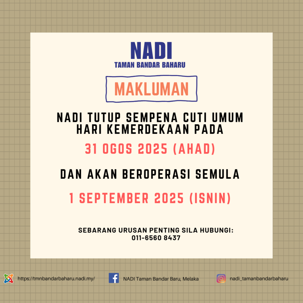 NOTIS PENUTUPAN NADI SEMPENA CUTI UMUM HARI KEMERDEKAAN