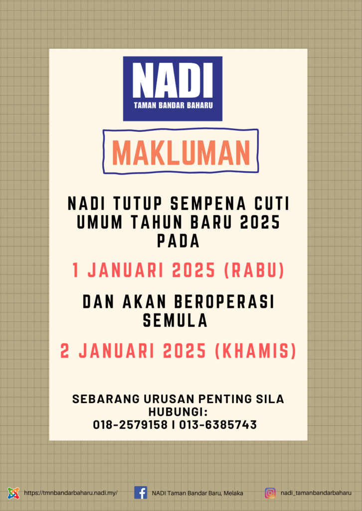 PENUTUPAN NADI SEMPENA CUTI UMUM TAHUN BARU 2025